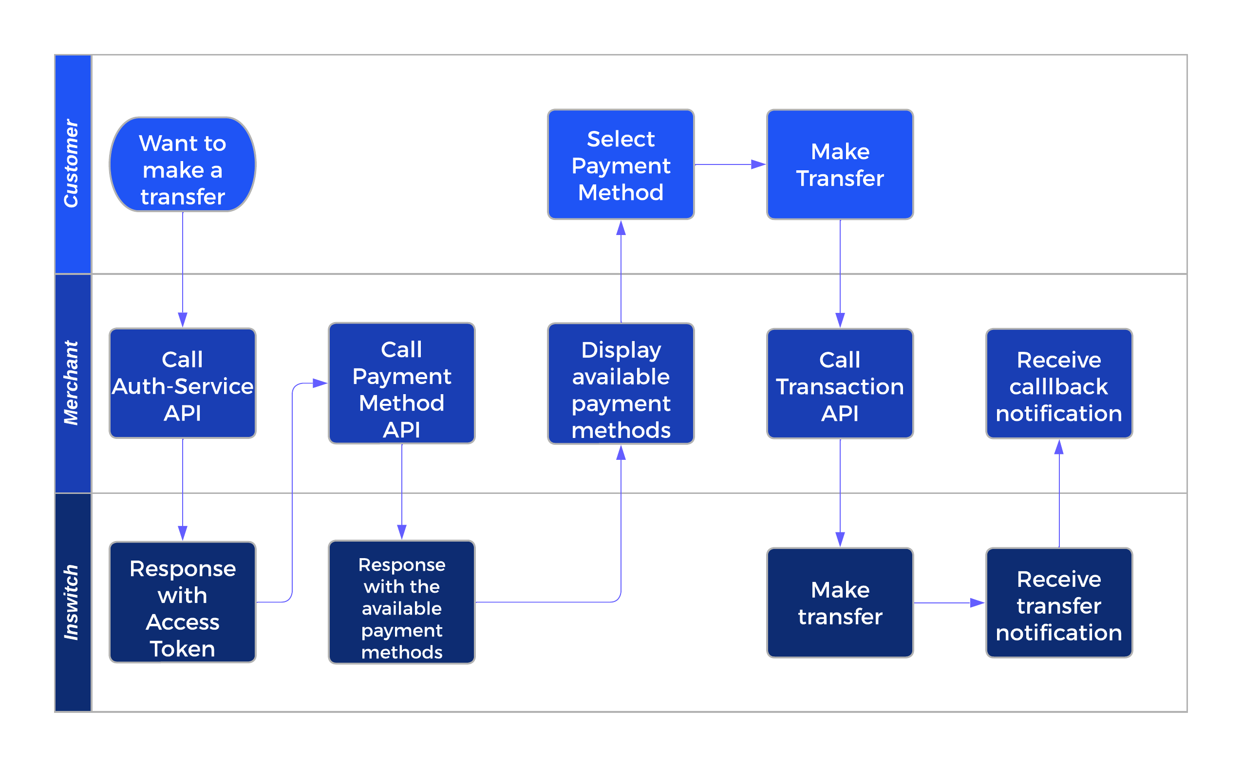 Here we describe how to use Inswitch APIs to make transfer to third parties using cash or bank as payment method. This is done using Transactions API