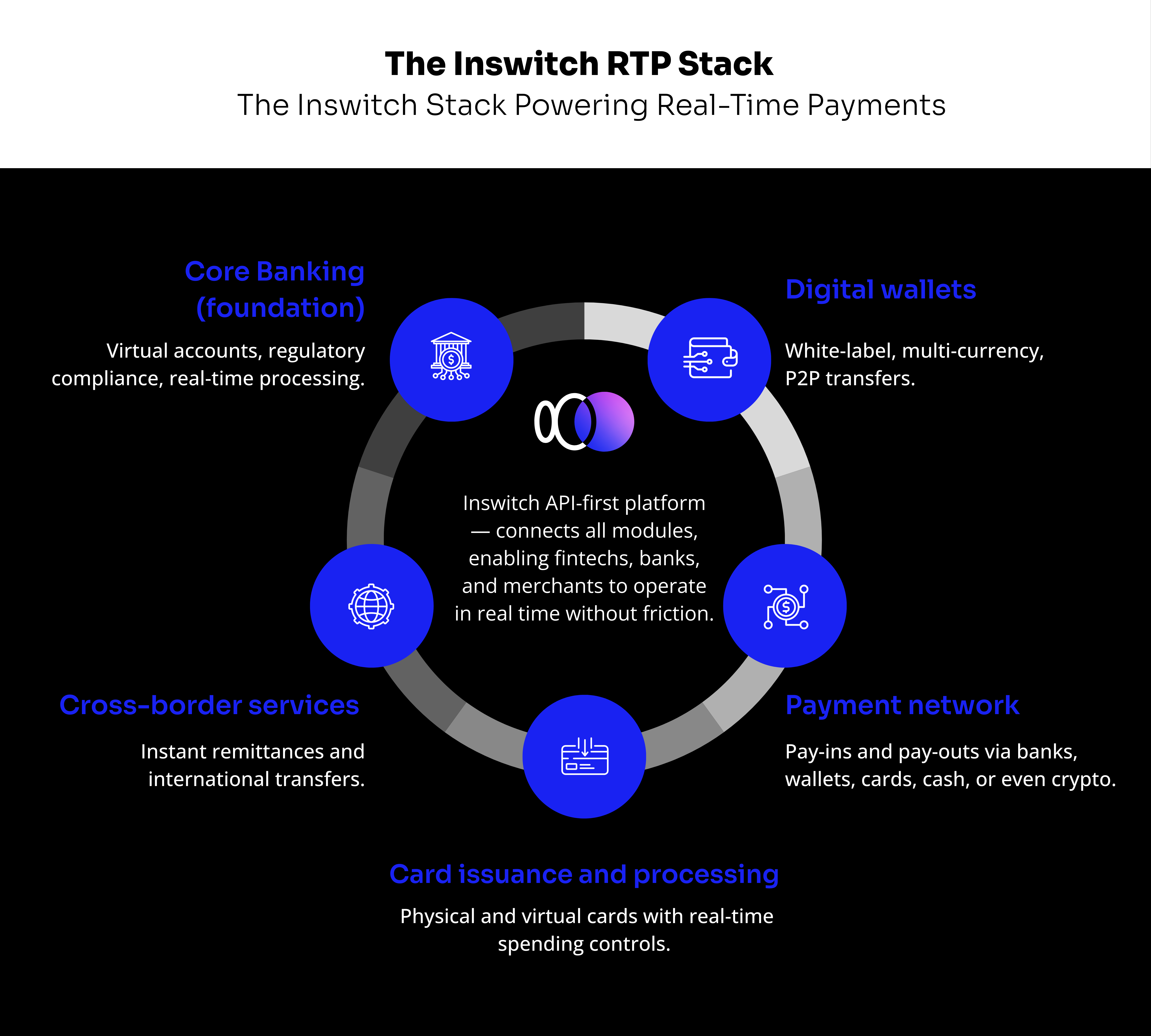 Inswitch has built an API-first architecture that gives companies access to a complete financial ecosystem, from payments and card issuance to cross-border services and core banking.